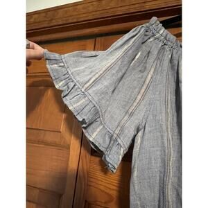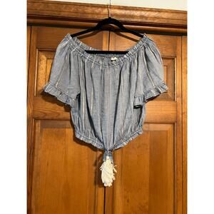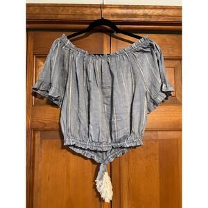 SURF GYPSY Women's Off-The-Shoulder Tassel Top Wide Leg Pant Blue Metallic Size M