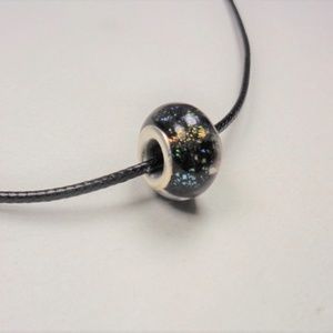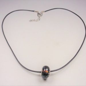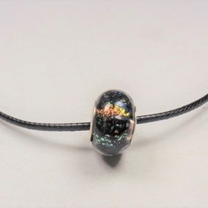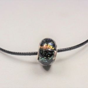 SURFERS BLACK MYSTIC RAINBOW BEAD BLACK LEATHER CORD PENDANT NECKLACE
