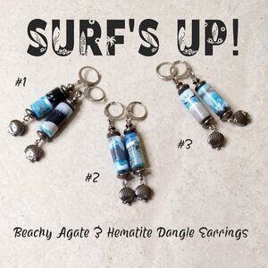 SURF'S UP! One-of-a-kind! Blue & Gray Agate + Hematite Shell Beaded Earrings