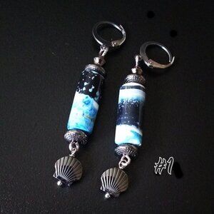Amazing + one-of-a-kind beach and ocean themed Dangle Earrings. Stormy seas, blue skies, night skies and sandy beaches...