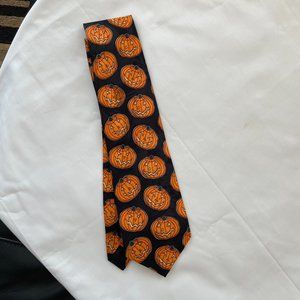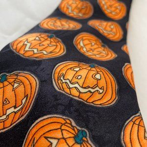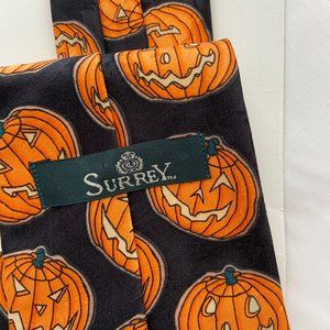 SURREY Brand Necktie JACK O LANTERNS Halloween Tie Polyester Orange Pumpkins