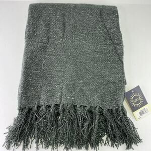 SURYA Tilda Charcoal Gray Metallic-Silver Throw Home Decor Knitted Fray Blanket