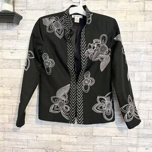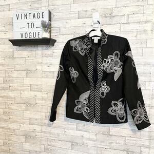 SUSAN BRISTOL Black & White Silk Blend Embroidered Jacket ~ Blazer, S