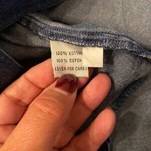 SUSAN BRISTOL Fall Denim Shirt Women Long Sleeve Tartan Patched Chambray Medium