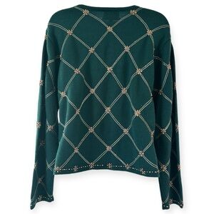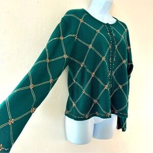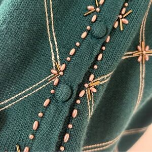 SUSAN BRISTOL Vtg 90s Hand Beaded Embroidered Windowpane Grid Cardigan Sweater L