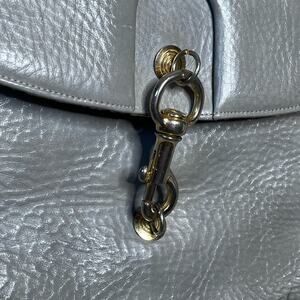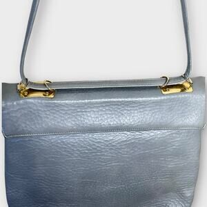 SUSAN GAIL vintage gray pebbled leather shoulder bag with gold hardware
