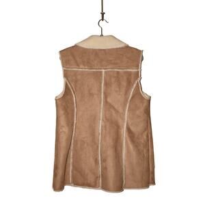 SUSAN GRAVER $97 Faux Shearling Vest w/ Front Pockets Brown Ivory Large