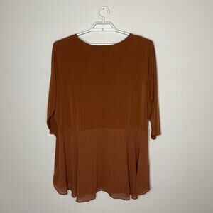 SUSAN GRAVER Burnt Orange Liquid Knit Chiffon Flowy Back Blouse Tunic Boho 3X