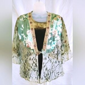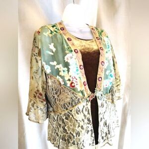 SUSAN GRAVER ESSENTIALS VELVET TOP Women's &  VINTAGE silky/Chiffon/Lace JACKET