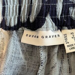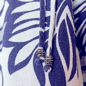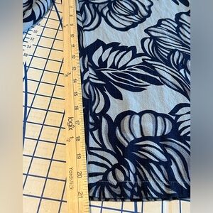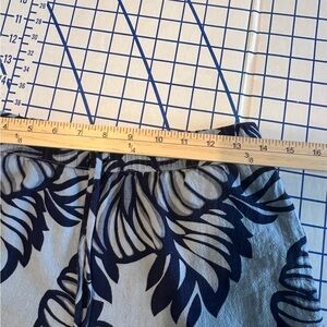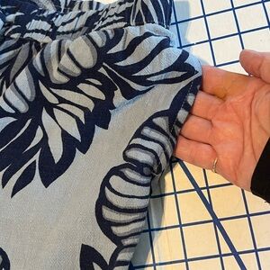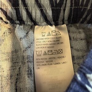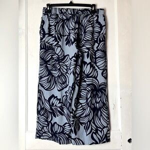 SUSAN GRAVER LINEN BLEND CROP TIE WAIST PANTS XS BLUE TROPICAL PRINT