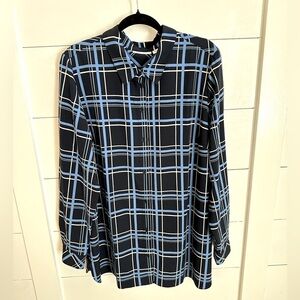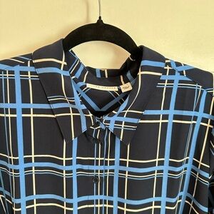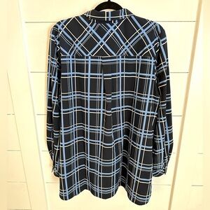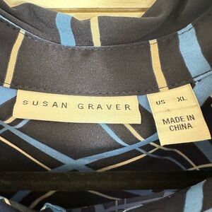 SUSAN GRAVER Oversized Black-blue button classic Polyester office blouse XL