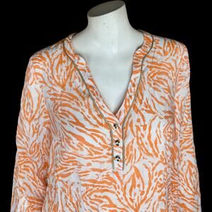 This item is a SUSAN GRAVER Passport Collection Tangerine Twist Zebra Print Top. It is a size XXS. This item is in new without tags (NWOT) condition.