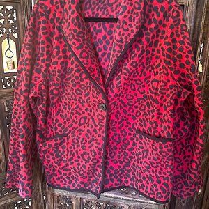 SUSAN GRAVER RED AND BLACK LEOPARD ANIMAL PRINT SOFT BLAZER JACKET XL