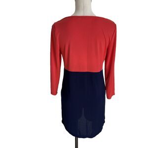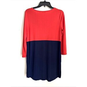 SUSAN GRAVER STYLE PREMIER Tunic Top Navy Blue Orange Colorblock Stretch XS