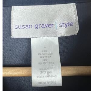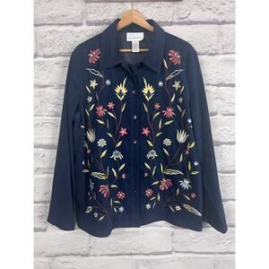 SUSAN GRAVER STYLE Women's L Navy Blue Embroidered Floral Boho Art Button Jacket