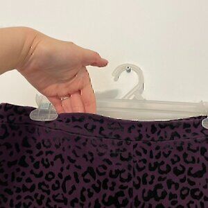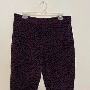 - purple with black cheetah leopard animal print flocked velour / velvet print pull on slim leg leggings legging and/or pants (brand calls them leggings)