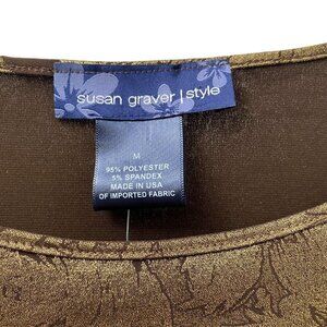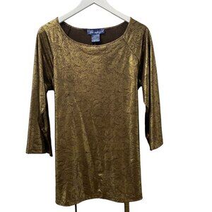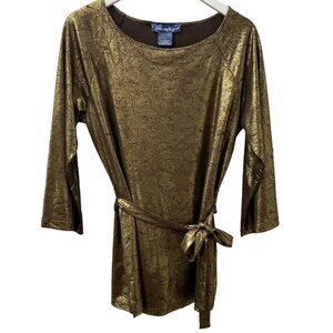 SUSAN GRAVER Womens Top Medium Gold Metallic Stretch Tunic 3/4 Sleeve w/ Belt