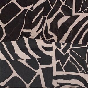 SUSAN GRAVER semi-sheer animal print art to wear patchwork look, high low flowy midi button up shirt dress or tunic long sleeve button cuffs, extra button attached to content tag. Above knee length. Perfect for a bold sexy look in brown and tan color way.