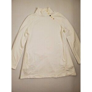 Susan Graver Weekend Comfy Cotton Mock Turtle Neck White Suze Small Pockets.