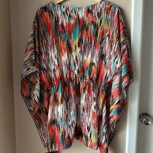 Description: SUSAN LAWRENCE Sheer Flowy Colorful Poncho Coverup