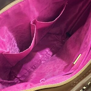 Step straight into 1990s retro glam β this Susan Lucci tote is pure throwback chic with its gold-and-brown vegan leather body, pink surprise lining, and polished SL hardware. Spacious, functional, and unapologetically fun, itβs the kind of vintage find that makes every coffee run or gallery stroll feel like a moment.