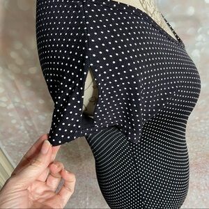 Cute stretchy top with sexy slits on top of sleeves. Excellent condition.