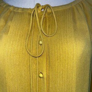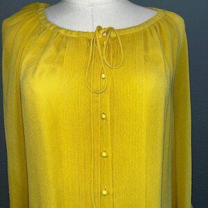 SUSANA MONACO 100% Silk Chiffon Mustard Gold Pleated Peasant Style Boho Dress 2