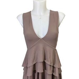SUSANA MONACO Beige Tiered Ruffle Fit & Flare Short Dress, V neck size small NEW