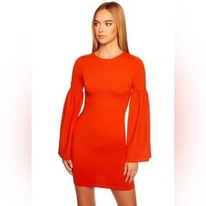 SUSANA MONACO Bell Sleeve Mini Dress in Pumpkin Orange Fitted Size Medium NEW
