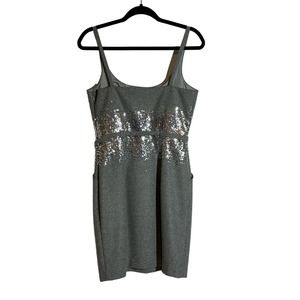 SUSANA MONACO - Silver gray glitter evening belted cocktail dress 6