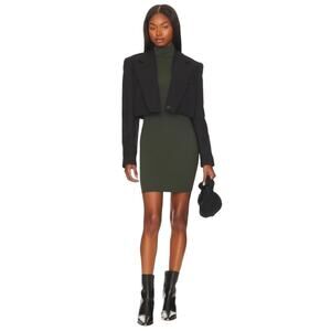 SUSANA MONACO x REVOLVE Caviar Green Mock neck Mini Dress Grunge Whimsigoth XS