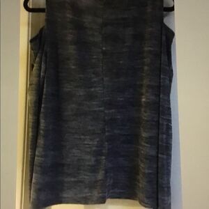 This pretty top by SUSAN LAWRENCE is brand new and never worn without tags. It is done in a long sleeve cold shoulder design. The body of the top is done in a gray and white marled design. It has a rounded V-neckline in black which is studded with sparkling rhinestones. It is done in 95% polyester and 5% spandex with a nice slinky feel. It is size Large.
