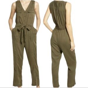 SUSINA MILITARY CARGO JUMPSUIT BUTTON FRONT SLEEVELESS OLIVE ARMY GREEN XS NWT