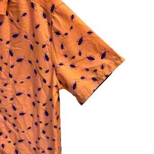 SUSLO Couture Size XL Men’s Button Up Shirt Peach Orange Purple Bugs Slim Fit