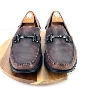 SUSSEX LINK DARK BROWN Leather Hand Sewn Horsebit Comfort Slip On Dress Loafers 9.5 M