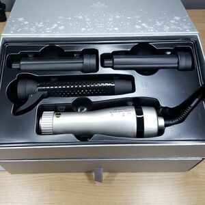 A versatile all-in-one dryer and styling tool featuring tourmaline-infused ceramic barrels and engineered air curling attachments. With the latest ionic technology, this innovative set reduces drying time while achieving stylish results in minutes. The set includes five attachments to dry, detangle, smooth, curl, and volumize hair, allowing you to create sleek, smooth looks. Swap out the interchangeable attachments, using the detachable base for the ultimate hair styling experience.