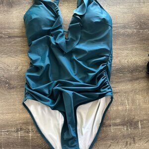 SUUKSESS Women Sexy Halter One Piece Swimsuits Ruffle Tummy Control XL