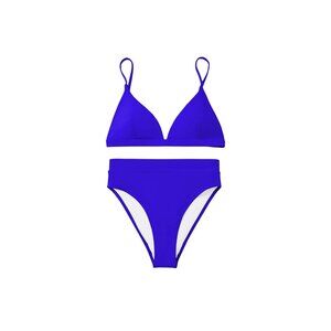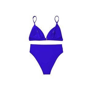 In a world of vibrant beaches and sun-kissed memories, this two-piece bikini tells a tale of elegance and allure. Its high-waisted design embraces the beauty of every curve, while the bold blue hue captures the essence of the ocean. Crafted for those who dare to stand out amidst the waves.