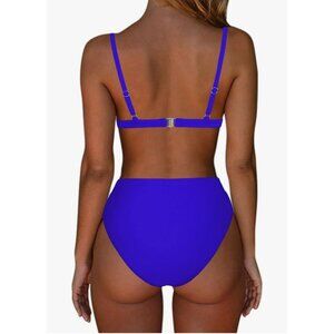 SUUKSESS Womens High Waisted High Cut Blue Bikini Set Size Large Sexy Pool Beach
