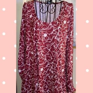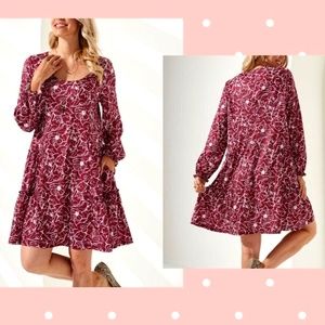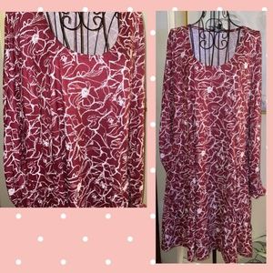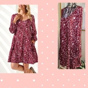 SUZANNE BETRO SILKY KNIT TIERED DRESS~DARK RED & WHITE FLORAL~RUFFLED HEM~LARGE