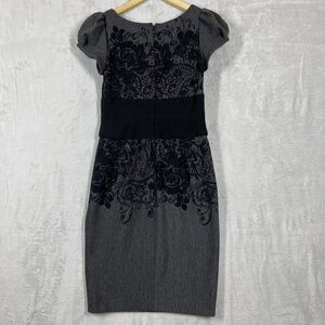 SUZE CHIN DRESS FOR MAGGY BOUTIQUE BLACK/GRAY S/S FLORAL KNEE LENGTH PARTY 10 M