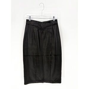 SUZELLE | Vintage 80's High-Waisted Leather Pencil Skirt in Black | Sz S