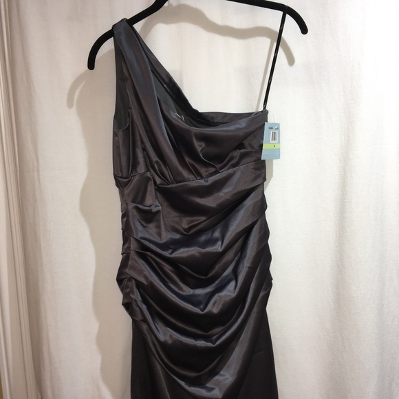 SUZI CHIN one shoulder ruched dress Sz 4 gray satin New