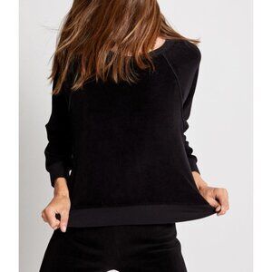 SUZIE KONDI The Saba Raglan Top Sweatshirt in Velour Black Size Small
