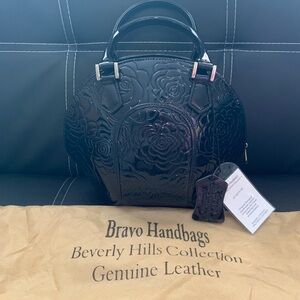 SVETLANA FLOWER PRINT BLACK- LEATHER HANDBAG - NEW WITH TAGS & DUST BAG