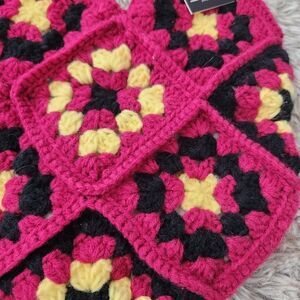 SVNX Crochet Granny Square Shoulder Bag Pink and Black NWT