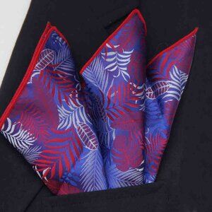SW for Gascoigne Pocket Square Red Blue White Palm Fronds Pattern Men's