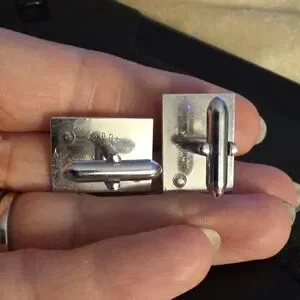 Stylish silver cufflinks with a unique design. Perfect for formal wear.