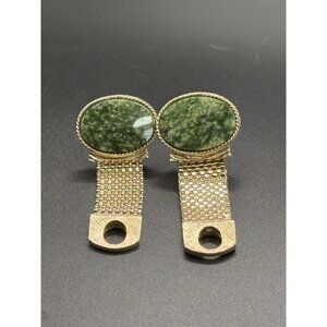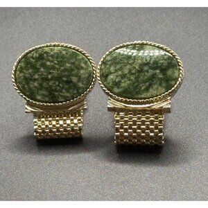 SWANK VINTAGE GREEN JADE CUFFLINKS MESH WRAPAROUND GOLD TONE