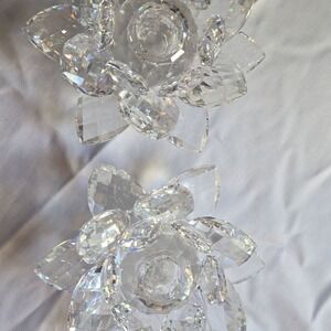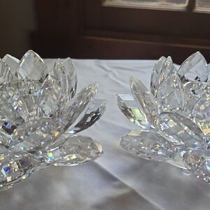 SWAROVSKI - 2 piece - Crystal Water Lily Lotus Flower Candle Holders